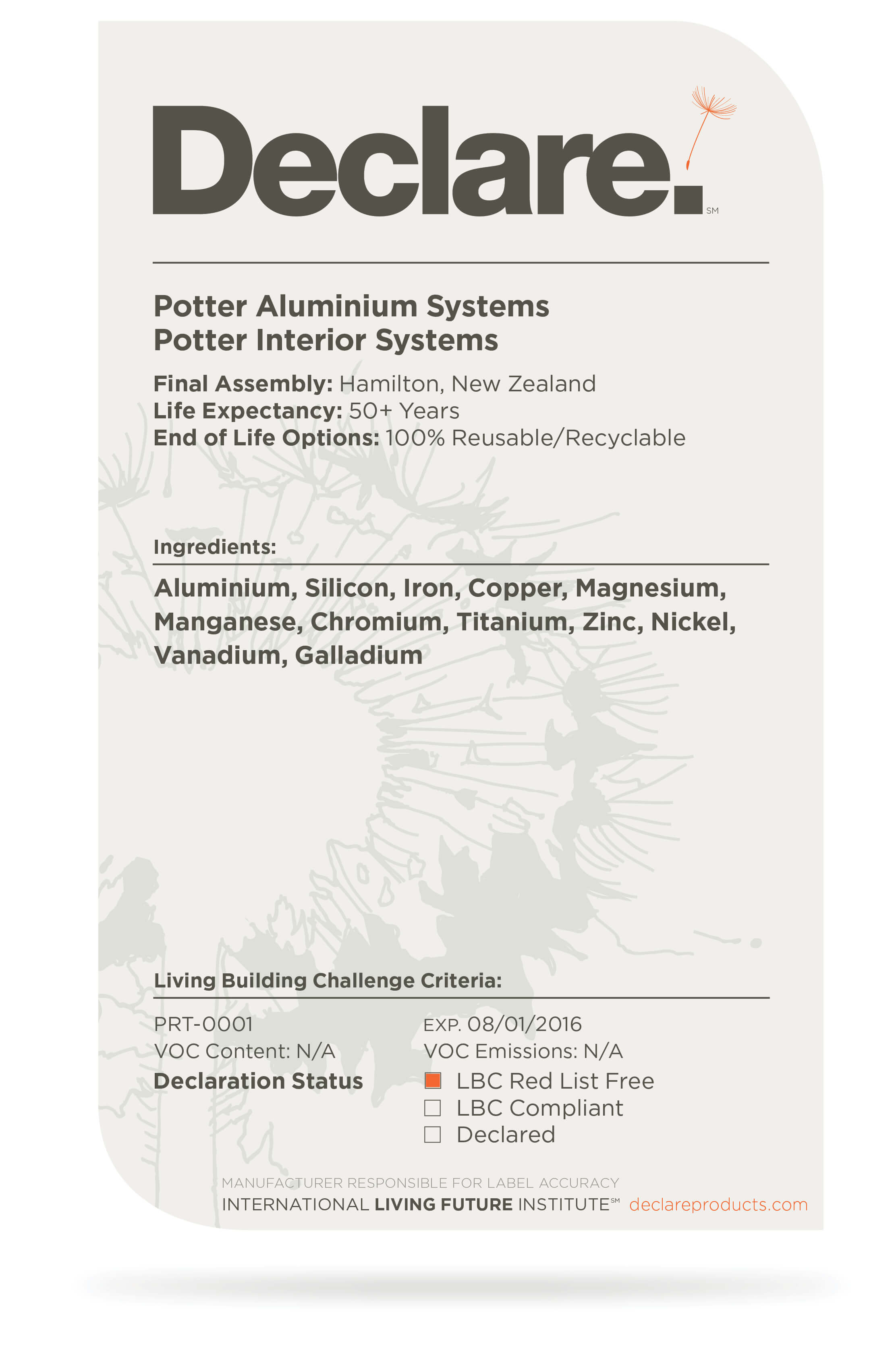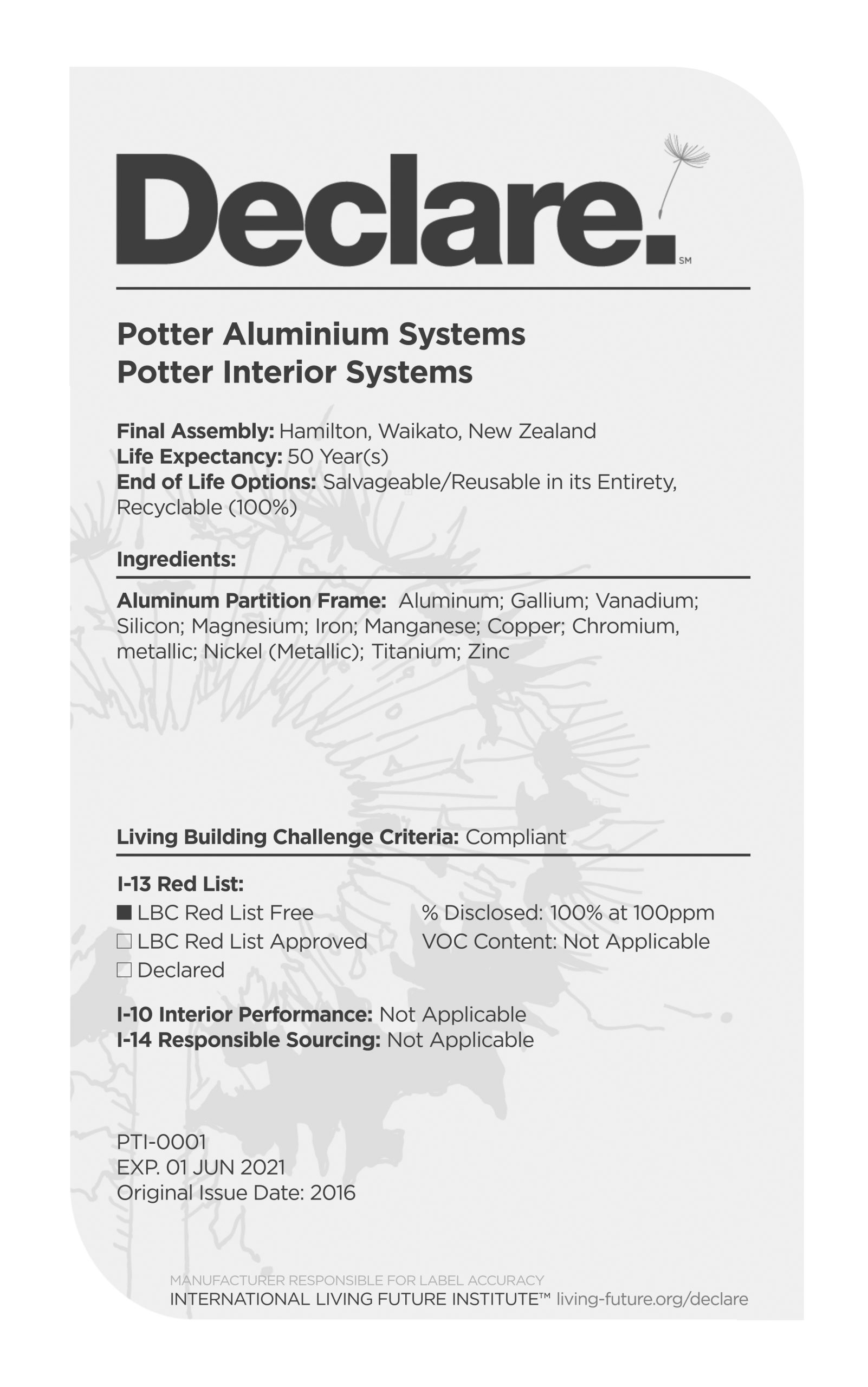 All our aluminium partition suites carry the Declare label.