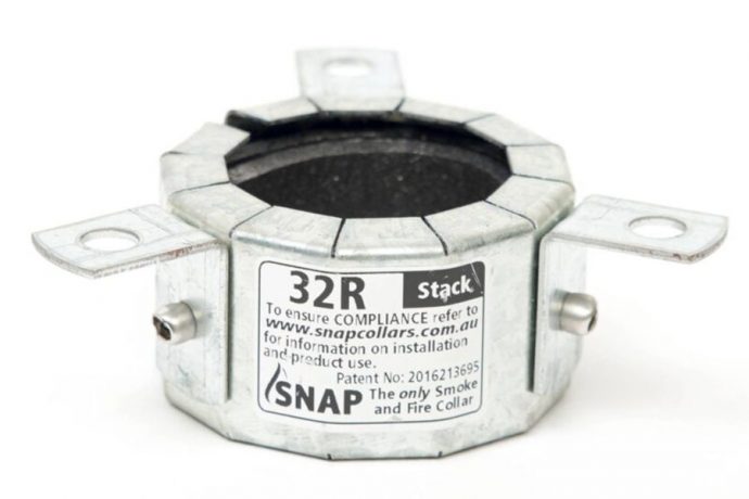 The 32R is a metal, retro-fit fire collar for fire-rated plasterboard, concrete, masonry and Hebel Powerpanel walls and stack applications in concrete floor slabs.